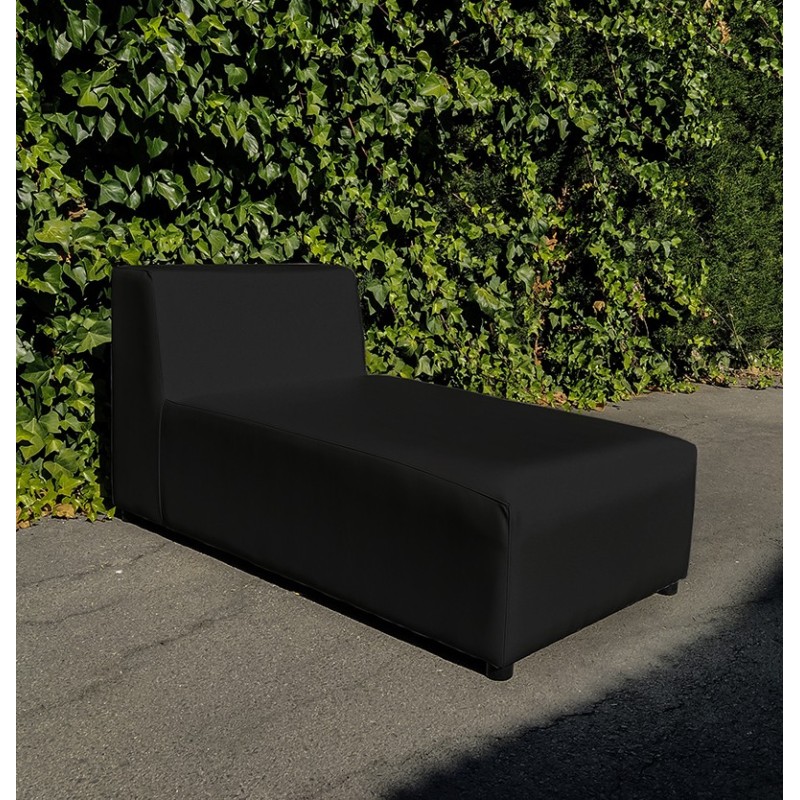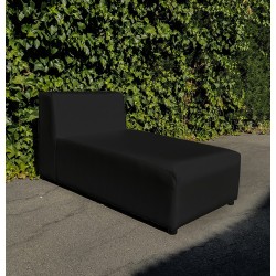 Chaise longue made of nautical leatherette and high-density foam, equipped with black plastic legs and resistant to outdoor environmental conditions.