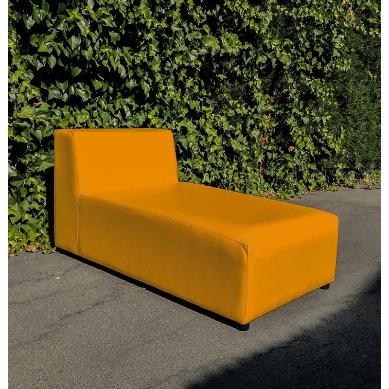 Chaise longue made of nautical leatherette and high-density foam, equipped with black plastic legs and resistant to outdoor environmental conditions.