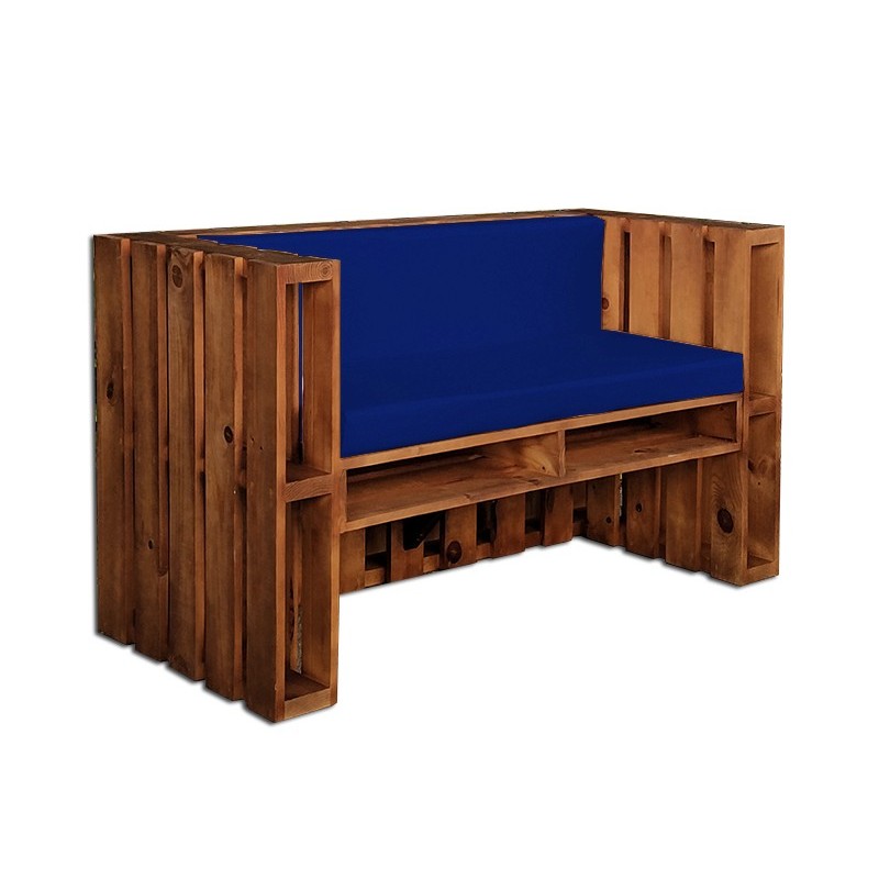 Pallet style armchair with arms and magazine racks for storing small objects such as glasses or smartphones.