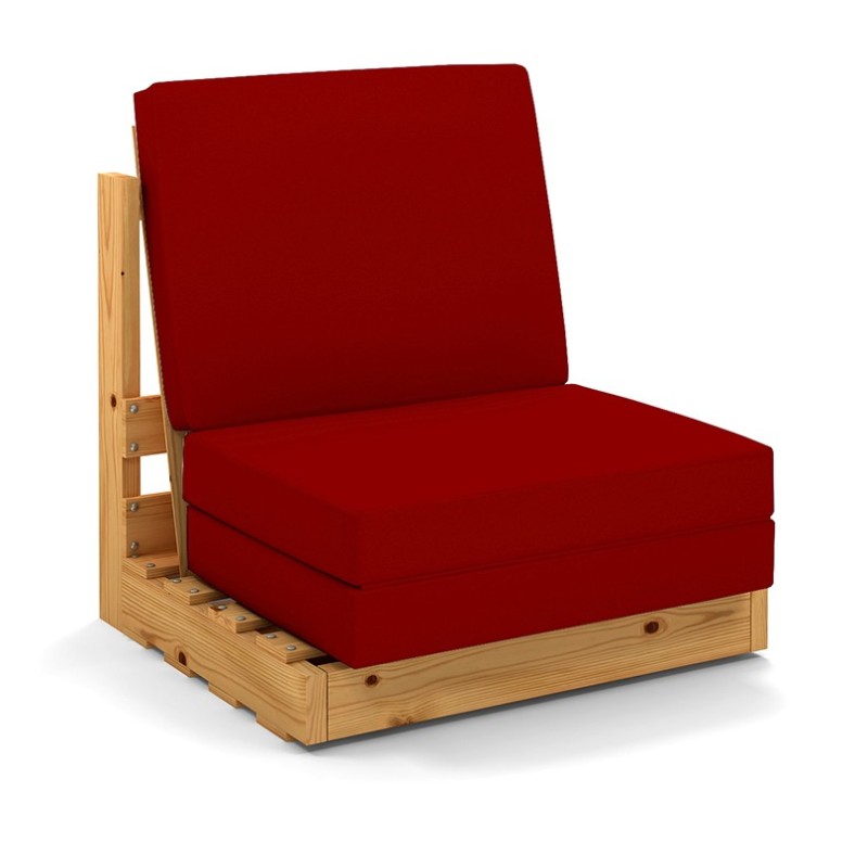 Pallet style armchair with inclined backrest for greater comfort, convertible into a lounger thanks to its design and triple-jointed mat, easily stackable.