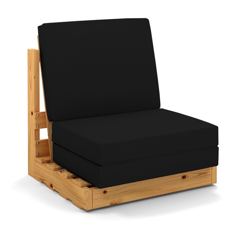 Pallet style armchair with inclined backrest for greater comfort, convertible into a lounger thanks to its design and triple-jointed mat, easily stackable.