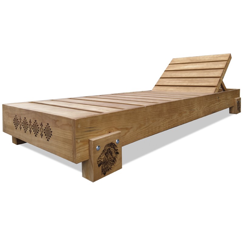 Lounger designed in the purest African style with engravings made using laser technology, its straight, lounge-type morphology as well as the design of its relief legs give it an unparalleled personality.