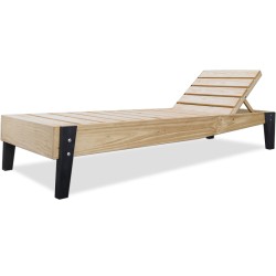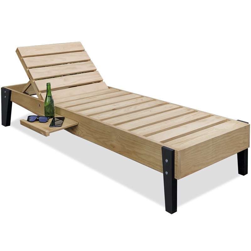 Modern design lounger with straight lines and extendable table made of pine wood with lasur protective treatment in two colors, sand-colored box and black legs