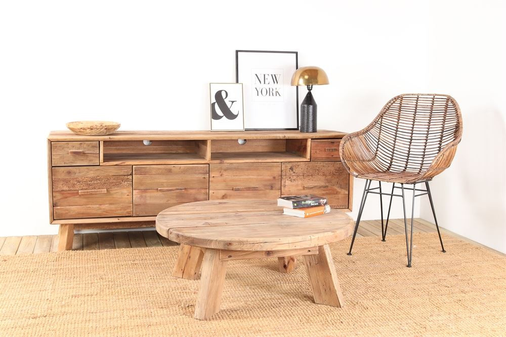 Our Bogotá coffee table, made of pine wood, will find its place in your living room. Entirely made of wood, this large table adopts a sober and timeless design. This product is made from reclaimed wood. This system offers a second life to the raw material. Are you looking for an authentic living room table? Opt for the recycled pine wood side table. It will find its place in a classic, rustic or contemporary interior. Robust, these low tables impress with their waxed appearance.