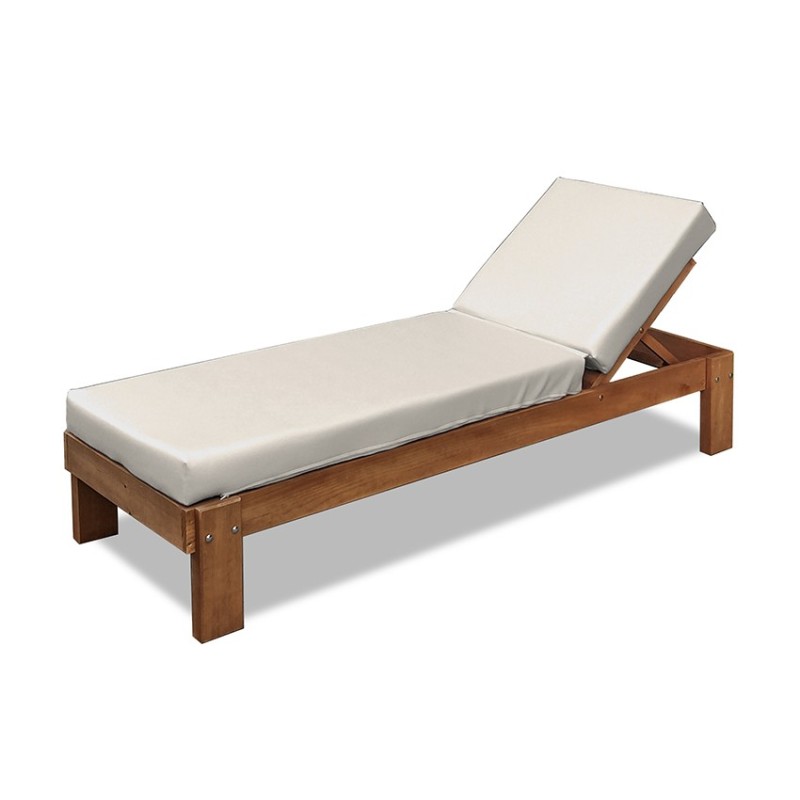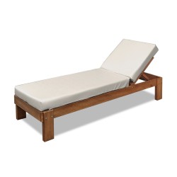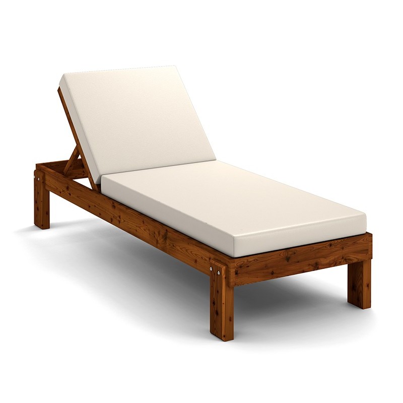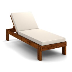 Tumbona fabricada en madera de pino protegido con pintura lasur color nogal resistente a condiciones ambientales exteriores.