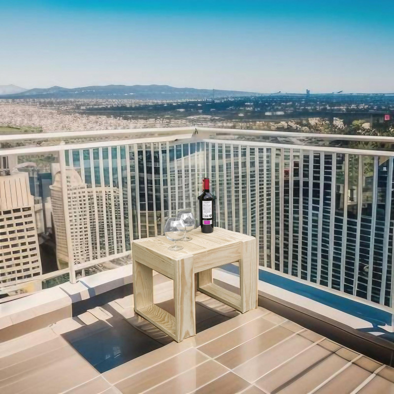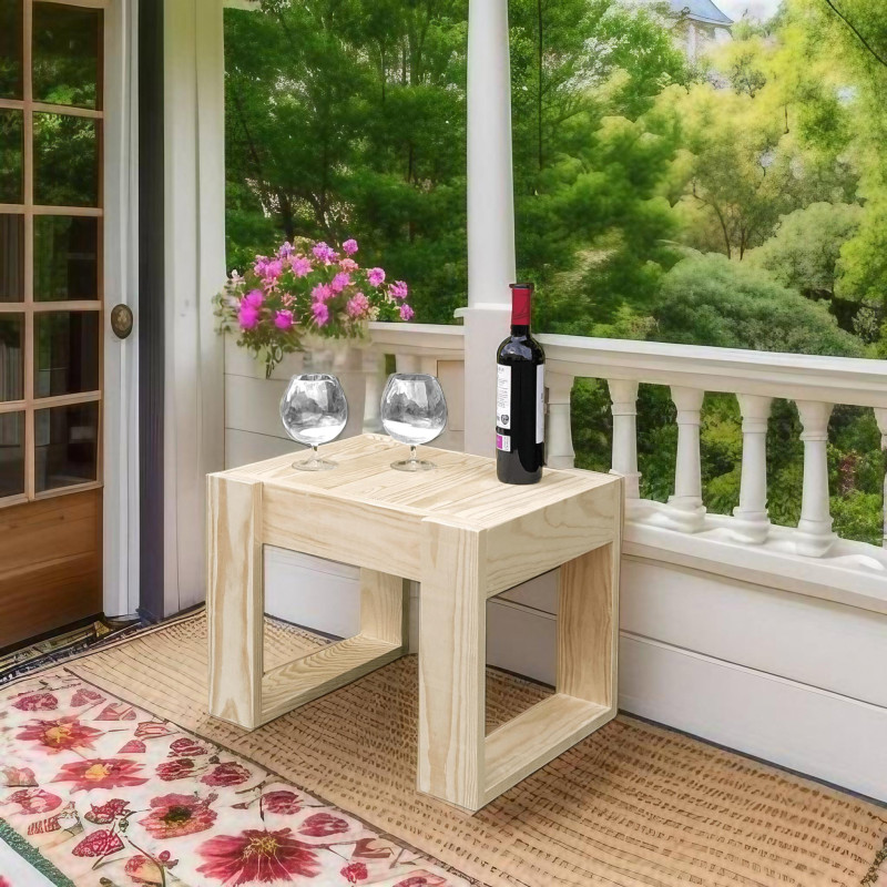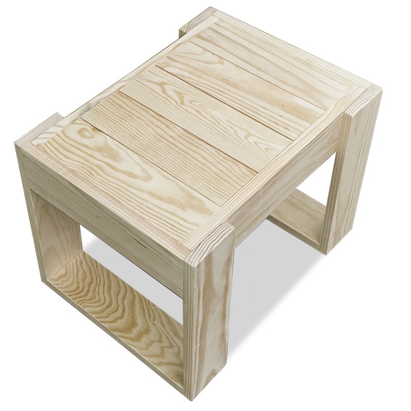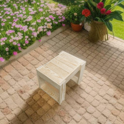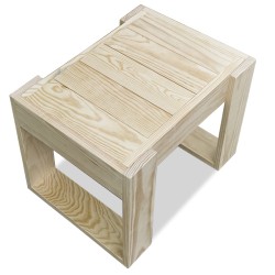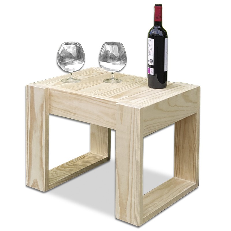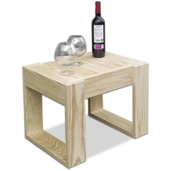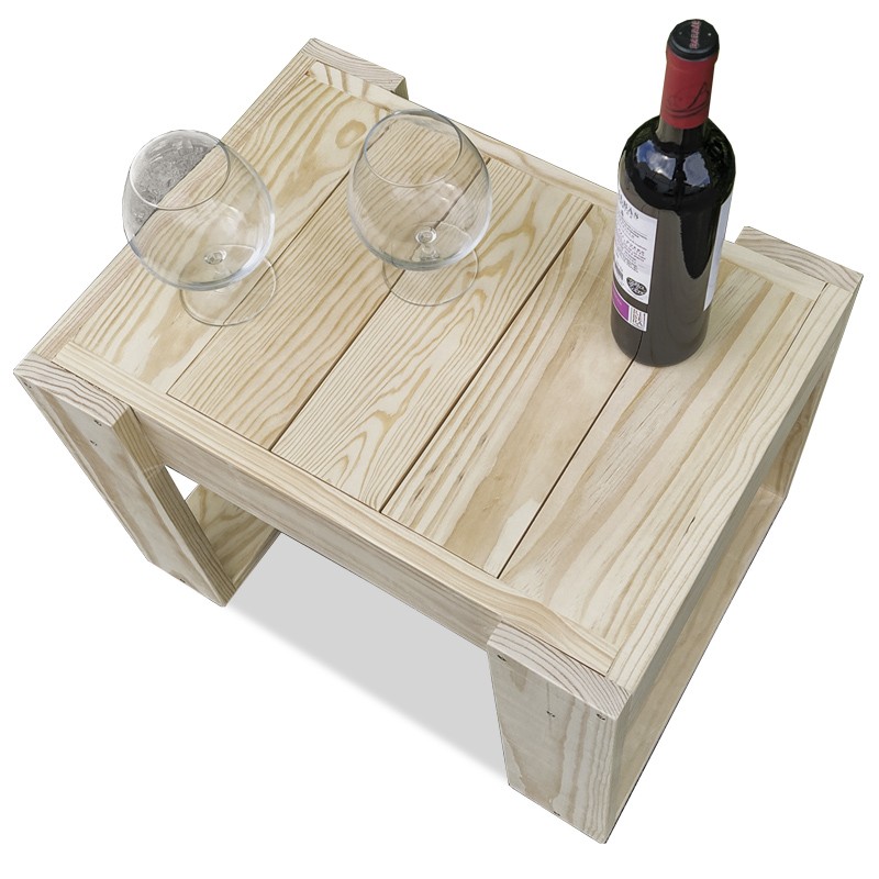 Mesa auxiliar fabricada en madera de pino de diseño moderno y minimalista, ideal para utilizar como auxiliar de tumbonas.