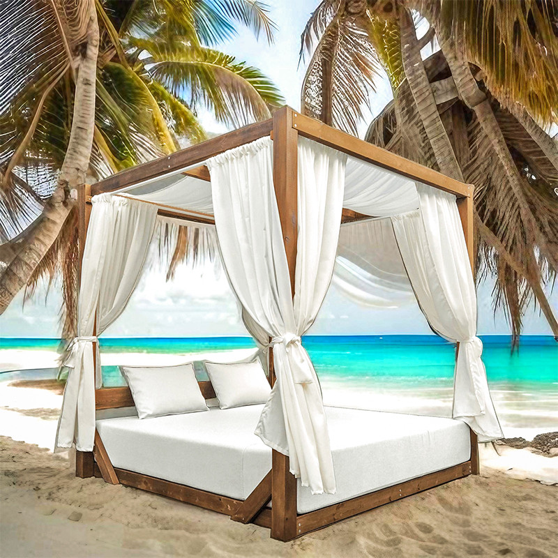 Cama balinesa de diseño exclusivo lounge para ambientes exteriores, dotada de un colchón especialmente confortable y robusto de 28 cmt. de espesor.