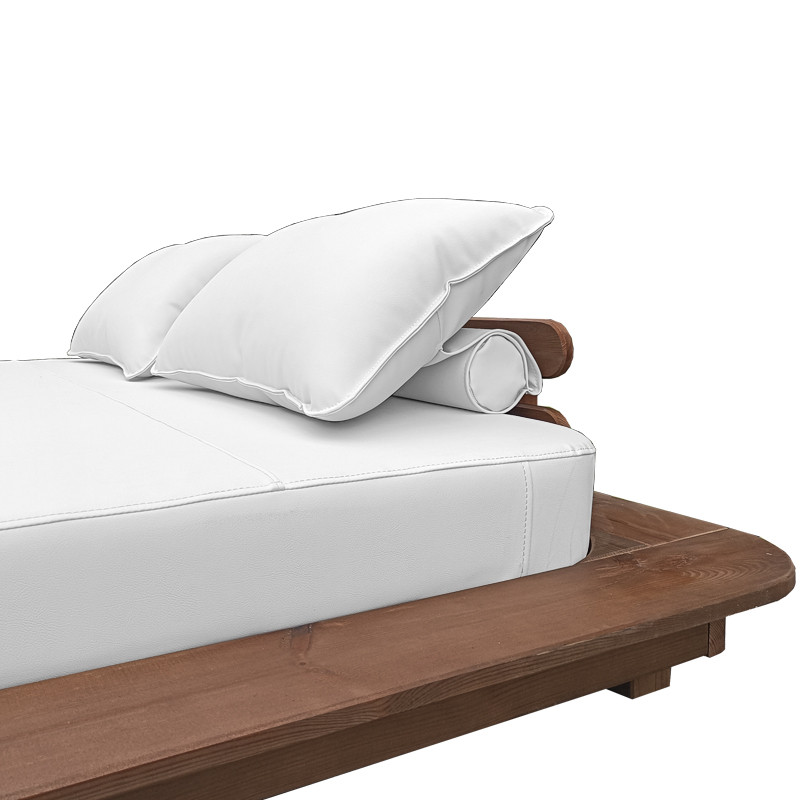 Acabado de serie: Estructura de madera color nogal, colchón y conjunto de cojines el polipiel náutico e ignífugo blanco.