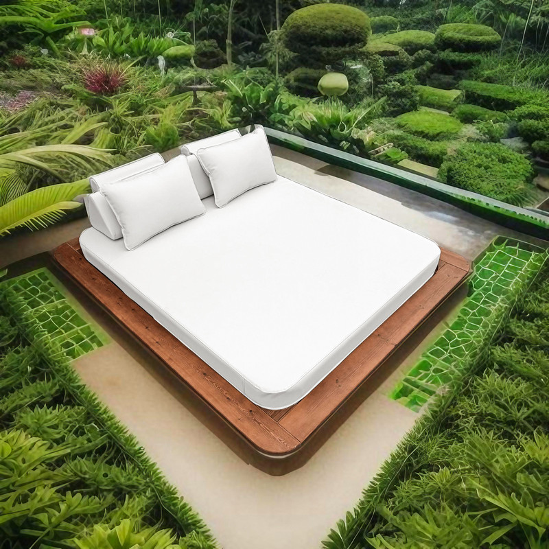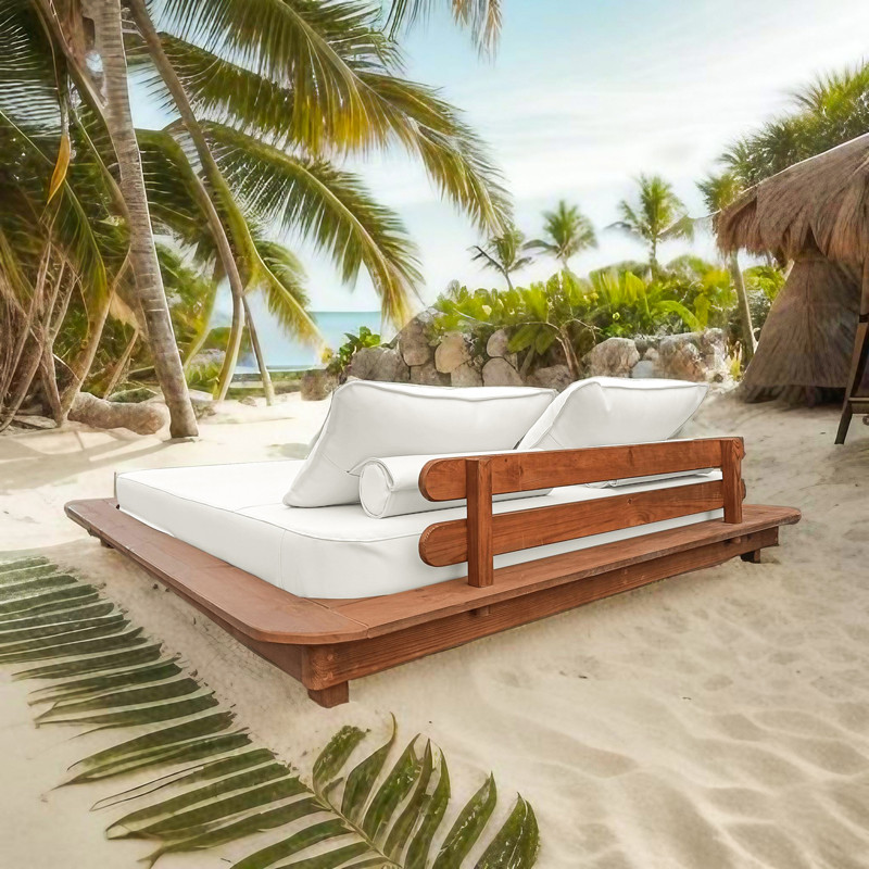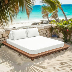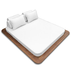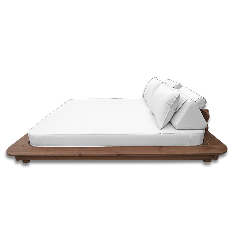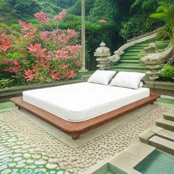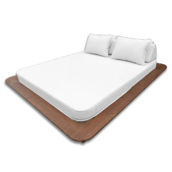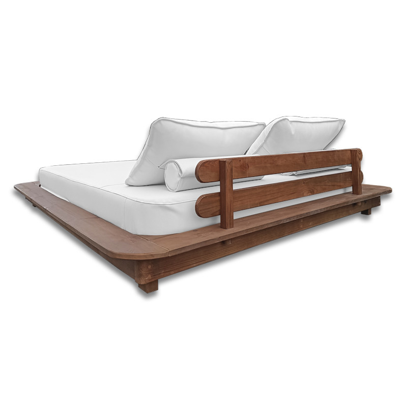 Nuestra cama balinesa Mahón ha sido diseñada con un marcado estilo japonés de diseño sobrio y elegante, el colchón con aristas redondeadas y suavizadas es embutido en el somier de madera para evitar deslizamientos indeseados, hemos pensado en la funcionalidad de nuestro producto y los voladizos de la estructura pueden ser utilizados para depositar sus enseres personales.