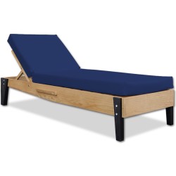Tumbona de diseño moderno con mesa extensible fabricada en madera de pino con tratamiento protector lasur en dos colores, cajillo en color arena y patas en negro, colchoneta articulada fabricada en polipiel náutico e ignífugo en diferentes acabados a elegir