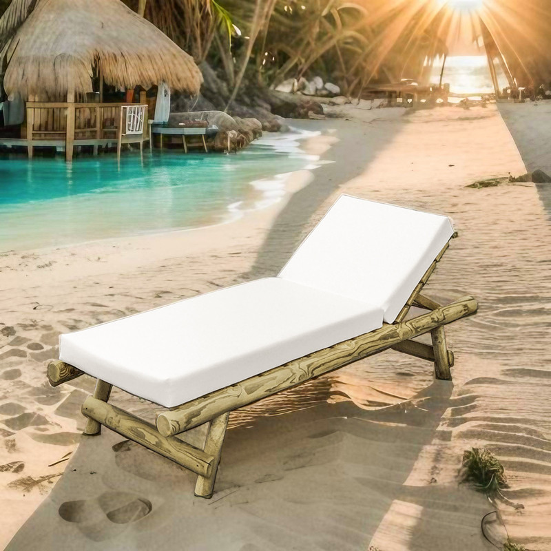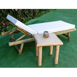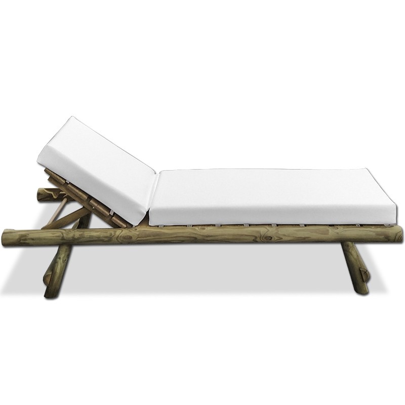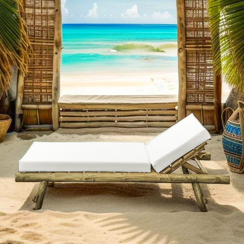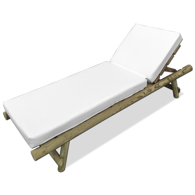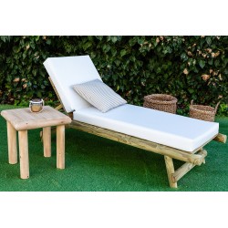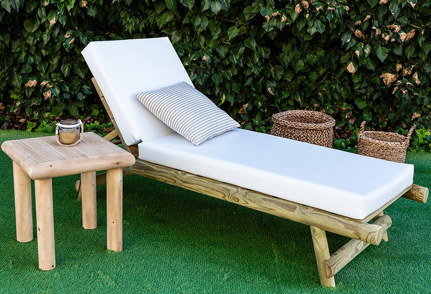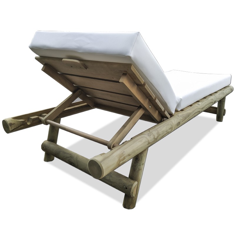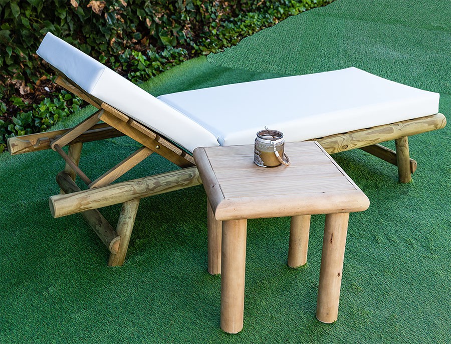 Tumbona fabricada en madera de pino autoclave nivel IV con formas redondeadas y patas en ángulo fijas