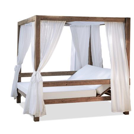 Tumbona de estilo moderno y minimalista dividida en dos piezas para un almacenamiento compacto, fabricada en polipiel náutico y espuma de alta densidad, resistente a condiciones ambientales exteriores (incluye cojín rulo de seire)