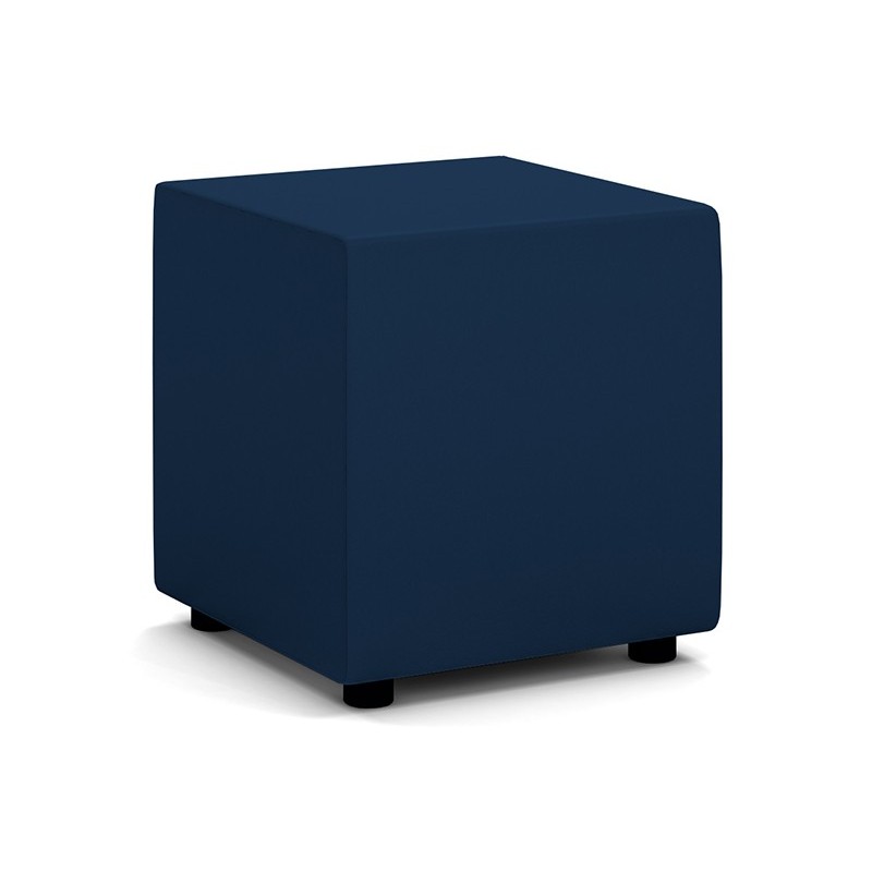 Puff cuadrado fabricado en polipiel náutico y espuma de alta densidad, dotado de patas plásticas de color negro y resitente a condiciones ambientales exteriores.