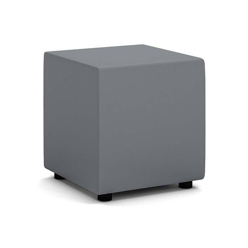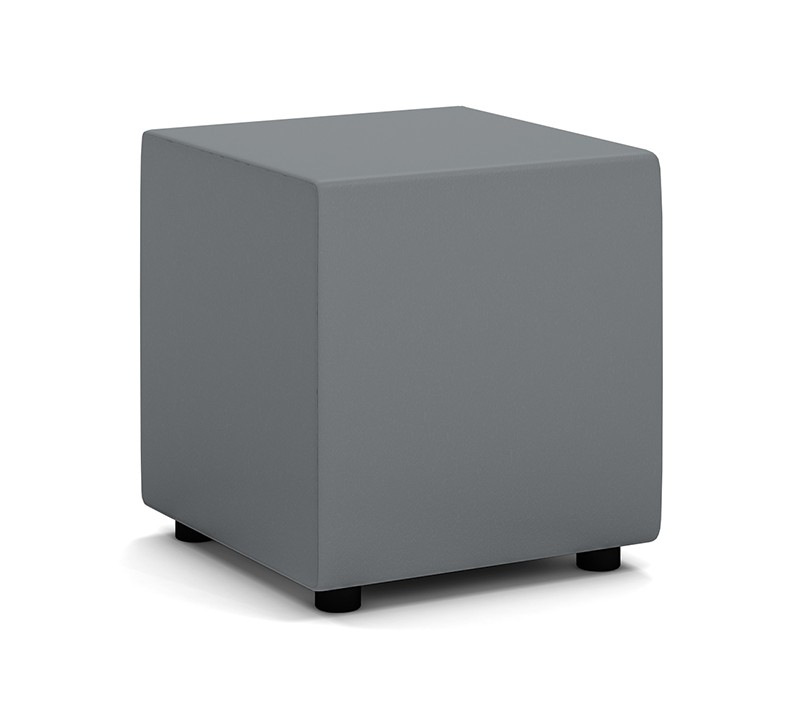 Puff cuadrado fabricado en polipiel náutico y espuma de alta densidad, dotado de patas plásticas de color negro y resitente a condiciones ambientales exteriores.