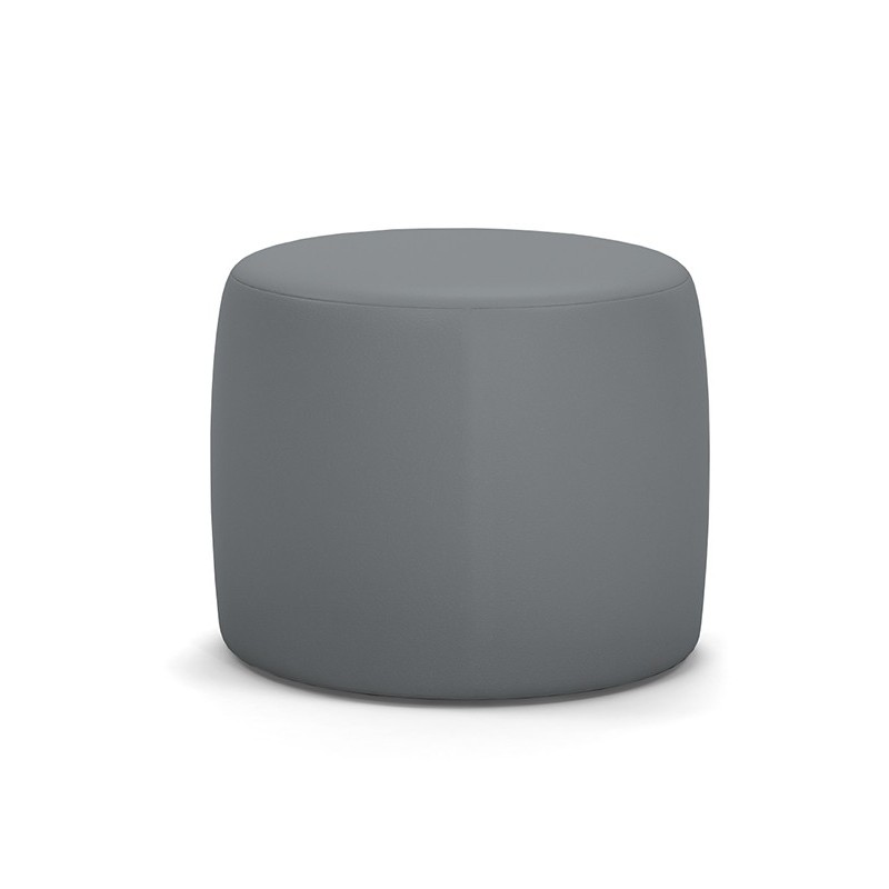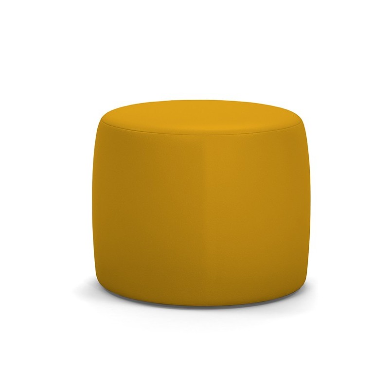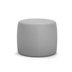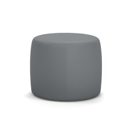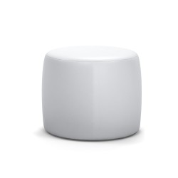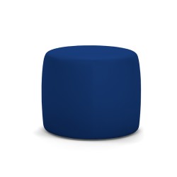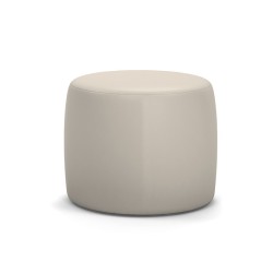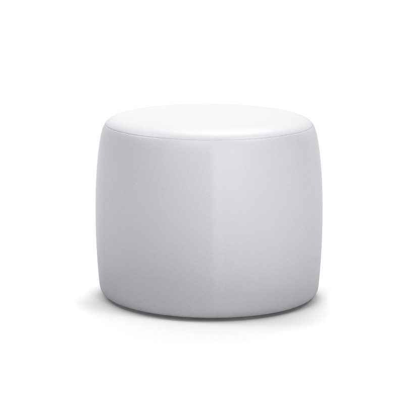 Puff redondo fabricado en polipiel náutico y espuma de alta densidad, dotado de patas plásticas de color negro y resistente a condiciones ambientales exteriores.