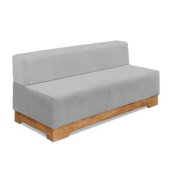 Sillón de diseño recto y sobrio pero a la vez cálido gracias a su faldón de madera que lo abraza en su zona inferior, fabricado en polipiel náutico y espuma de alta densidad, resistente a condiciones ambientales exteriores.