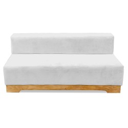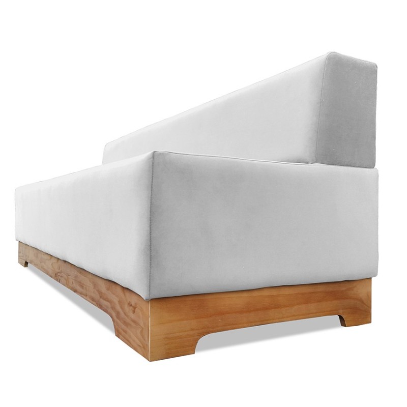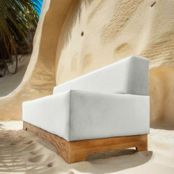 Sillón de diseño recto y sobrio pero a la vez cálido gracias a su faldón de madera que lo abraza en su zona inferior, fabricado en polipiel náutico y espuma de alta densidad, resistente a condiciones ambientales exteriores.