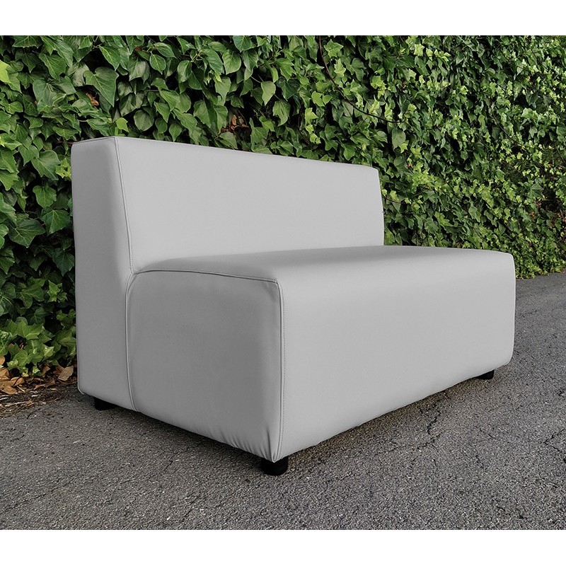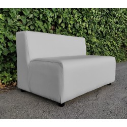 Sillón fabricado en polipiel náutico y espuma de alta densidad, dotado de patas plásticas negras y resistente a condiciones ambientales exteriores.