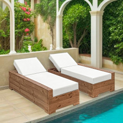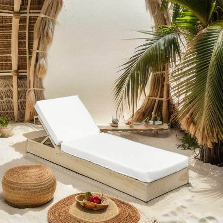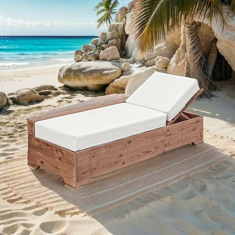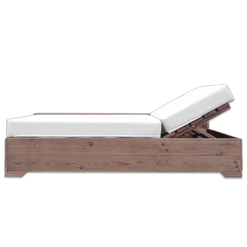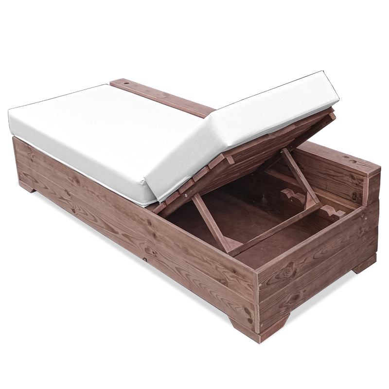 - Tumbona con estructura en madera tratada de pino autoclave nivel IV y protegida con acabado lasur color nogal de serie