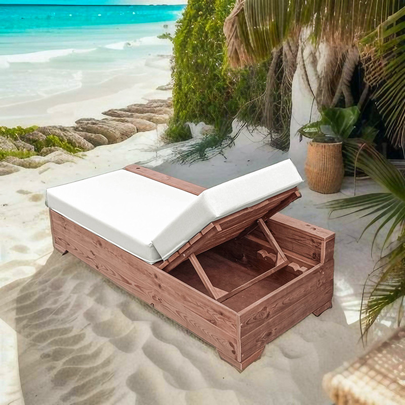 Nuestra tumbona Camerún es un modelo de diseño único y exclusivo resistente a condiciones ambientales exteriores, es un producto ideado para utilizarse como tumbona, cama y y sofá para tres personas, también hemos pensado en el almacenamiento y además de la triple funcionalidad de nuestra tumbona puede ser utilizada como baúl, en su interior puede guardarse el respaldo o algún objeto personal el cual no tenga sitio para almacenarlo.
