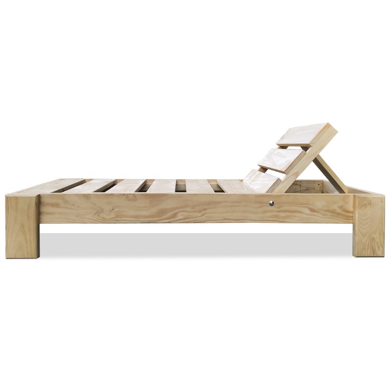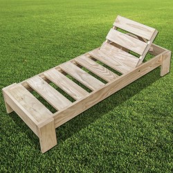 Tumbona infantil para exterior fabricada en madera de pino protegida con pintura lasur, color arena de serie.