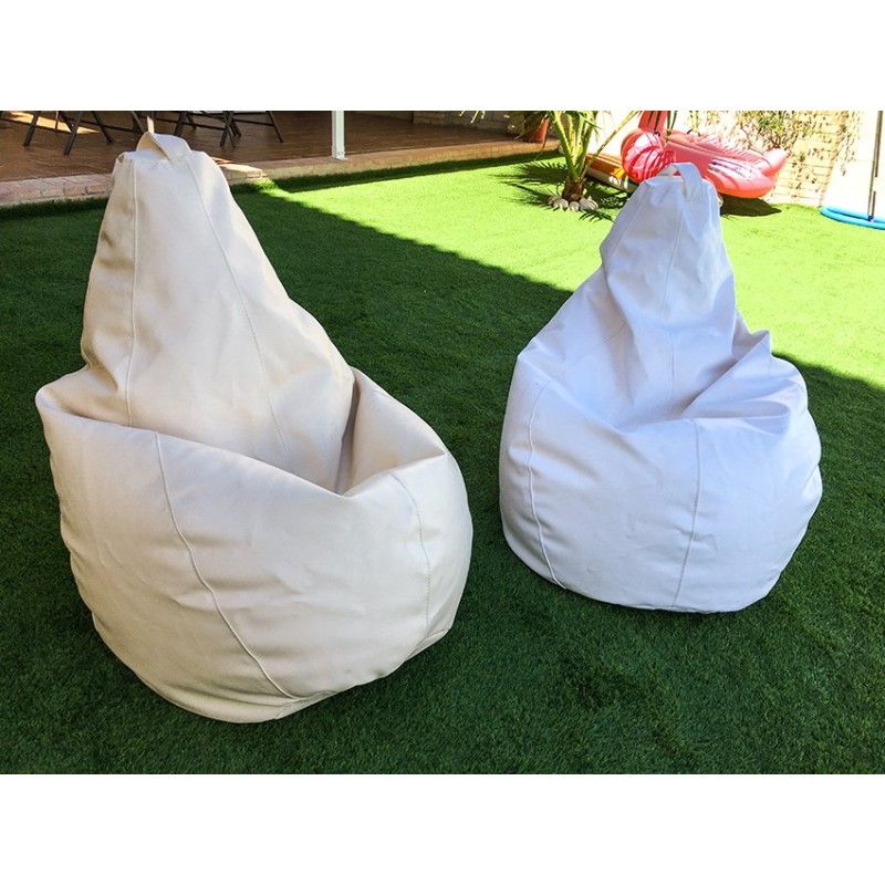 Puff en similicuir nautique, rempli de billes de polystyrène expansé et résistant aux conditions environnementales extérieures.