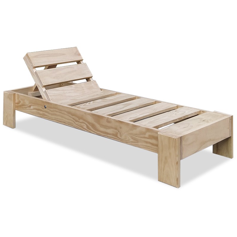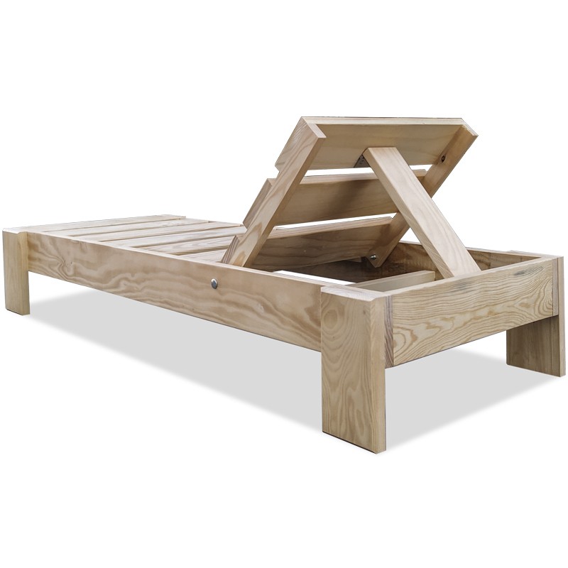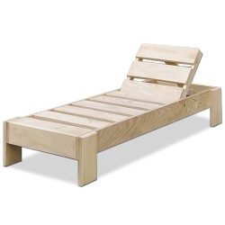 Chaise longue d'extérieur pour enfants en bois de pin protégé par peinture lasur, couleur sable en standard.