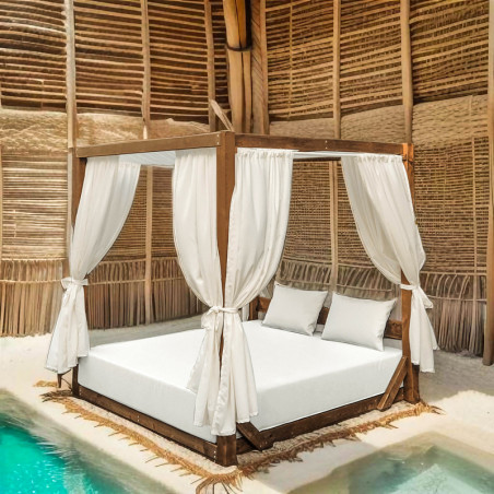 Lit balinais au design élégant et sobre conçu principalement pour une installation sur les plages, il est également possible de l'adapter à des environnements tels que les piscines ou les jardins grâce à des pieds en métal.