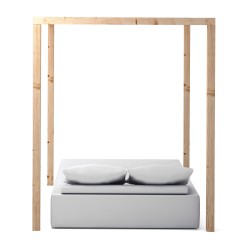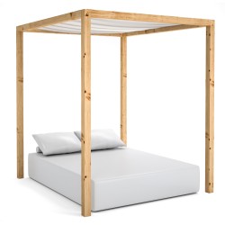 Finition du lit couleur naturelle, matelas en similicuir marin couleur blanc, toit en coton et polyester.