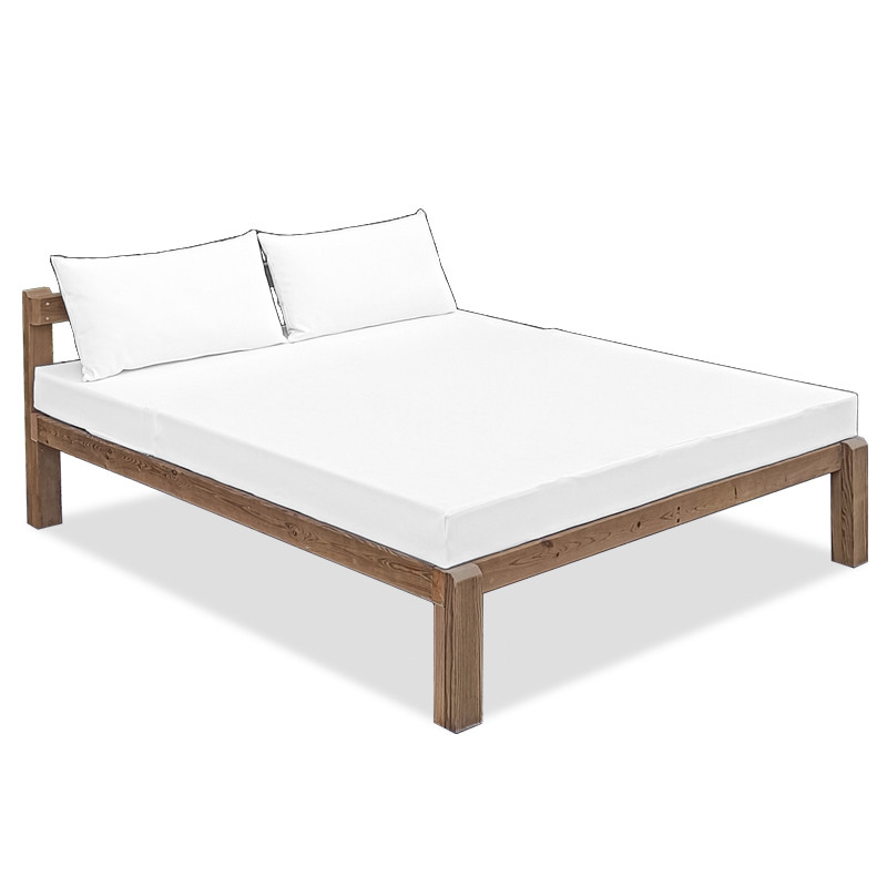 Lit balinais sans ciel de lit en bois de pin traité en autoclave de niveau IV, similicuir nautique et mousse haute densité, résistant aux environnements extérieurs. (Comprend 2 coussins 80x70 cm.)
