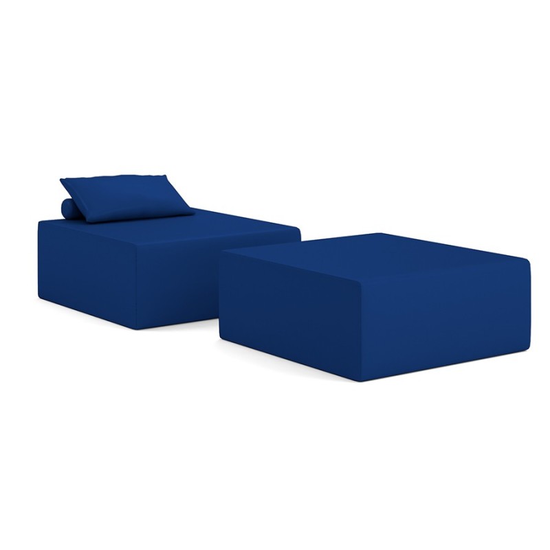 Chaise longue de style moderne et minimaliste divisée en deux parties pour un rangement compact, fabriquée en similicuir nautique et mousse haute densité, résistante aux conditions environnementales extérieures (comprend un coussin à roulettes standard)
