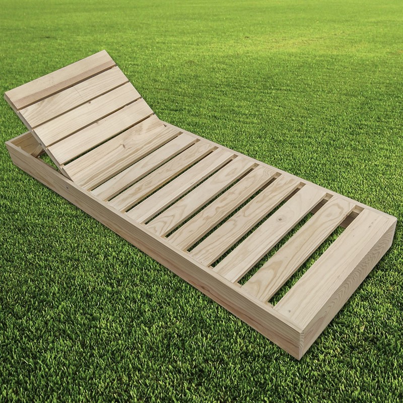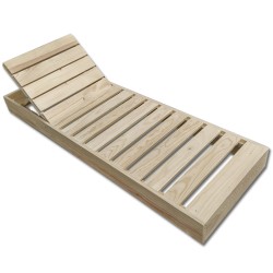 Lettino senza gambe a livello del suolo, ideale per ambienti lounge, realizzato in legno di pino protetto con vernice laser, resistente alle condizioni ambientali esterne.