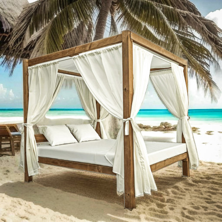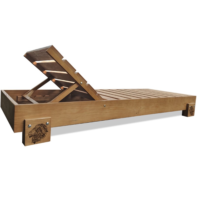 Lettino progettato nel più puro stile africano con incisioni realizzate con tecnologia laser, la sua morfologia dritta, tipo lounge, così come il disegno delle gambe in rilievo gli conferiscono una personalità senza eguali.