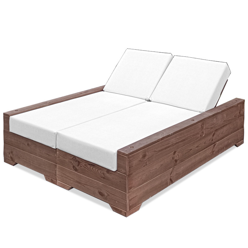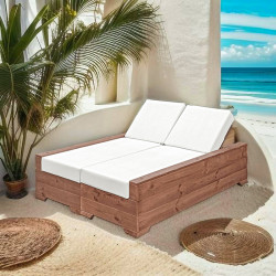 - Due lettini prendisole con struttura in legno di pino trattato in autoclave livello IV e protetto con finitura al laser noce di serie.
