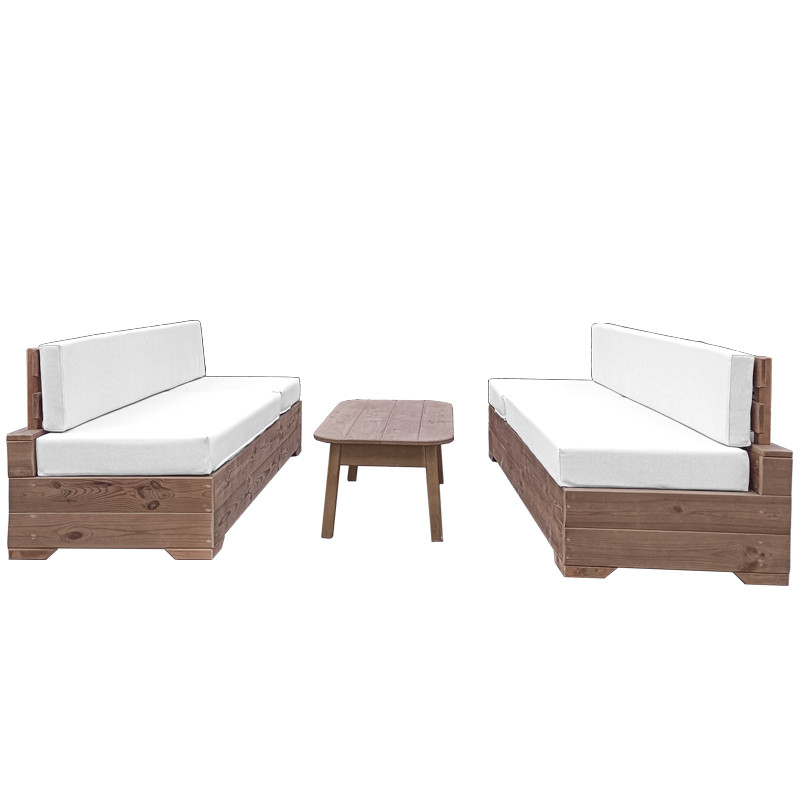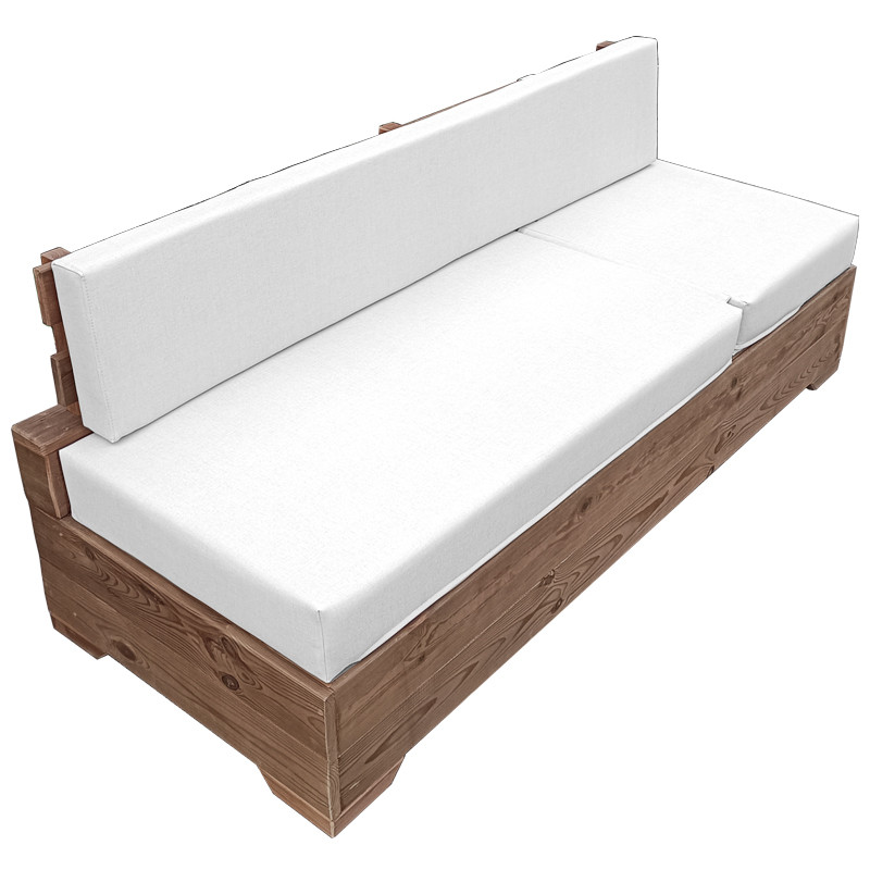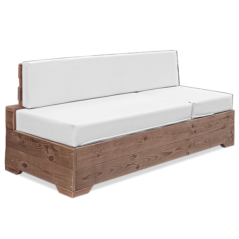 - Divano con struttura in legno di pino trattato in autoclave livello IV e protetto con finitura lasur noce di serie.